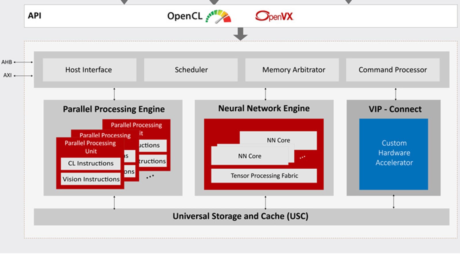 Конфигурация Vivante VIP8000 включает многопоточный блок обработки, блок нейронной сети и блок универсальной кэш-памяти. В процессор можно напрямую загружать нейронные сети, сгенерированные с помощью популярных инструментов, включая Caffe и TensorFlow. Используя библиотеку OpenVX, эти сети можно интегрировать с другими компонентами системы машинного зрения. Процессор поддерживает все популярные модели сетей, включая AlexNet, GoogleNet, ResNet, VGG, Faster-RCNN, Yolo, SSD, FCN и SegNet, и слои. Возможность программирования обеспечивает поддержку моделей и слоев, которые могут появиться в будущем. Для программирования процессора можно использовать OpenCL или OpenVX.