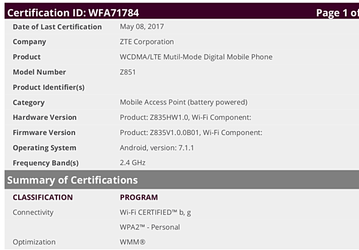 В базе данных WFA замечен смартфон ZTE Z851