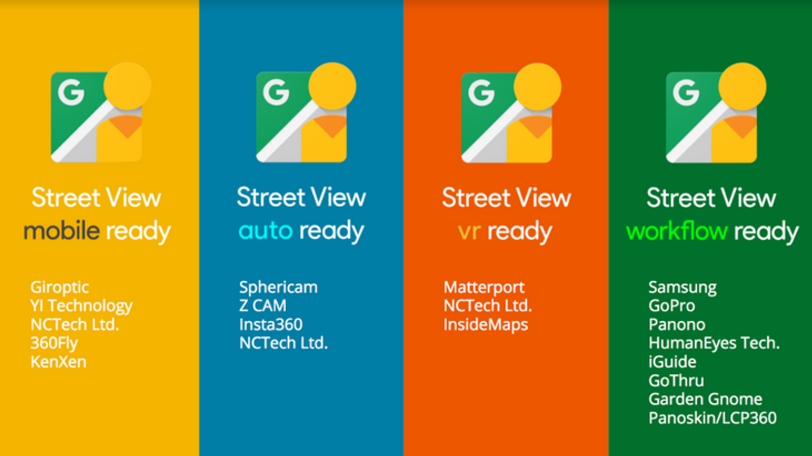 Сертификат Street View mobile просто позволит камерам загружать видео в Сеть посредством мобильного приложения. Сертификат Street View auto получат камеры, предназначенные для автомобилей. Сертификат Street View VR будет выделять более умелые камеры, способные учитывать геометрические параметры окружающего пространства для построения виртуальных пространств. Ну и сертификат Street View workflow получат те камеры, которые будут иметь инструменты для публикации непосредственно в учётных записях Street View.