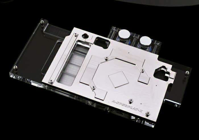 Основание водоблока изготовлено из меди и защищено от коррозии никелированием. На участке, прилегающем к GPU, сформированы микроканалы шириной 0,5 мм.