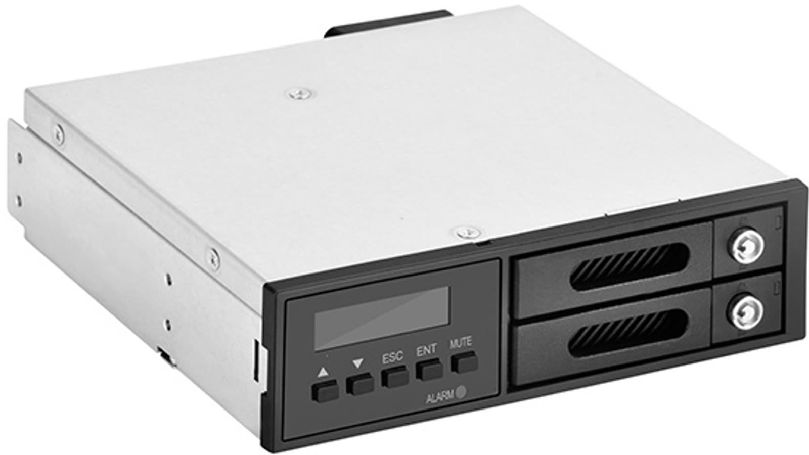 Накопители должны быть оснащены интерфейсом SATA. Благодаря использованию контроллера ASMedia 1092R, их можно объединить в массив RAID 0 или 1. Каждый лоток снабжен замком для блокировки накопителя. Охлаждение накопителей обеспечивает 40-миллиметровый вентилятор.