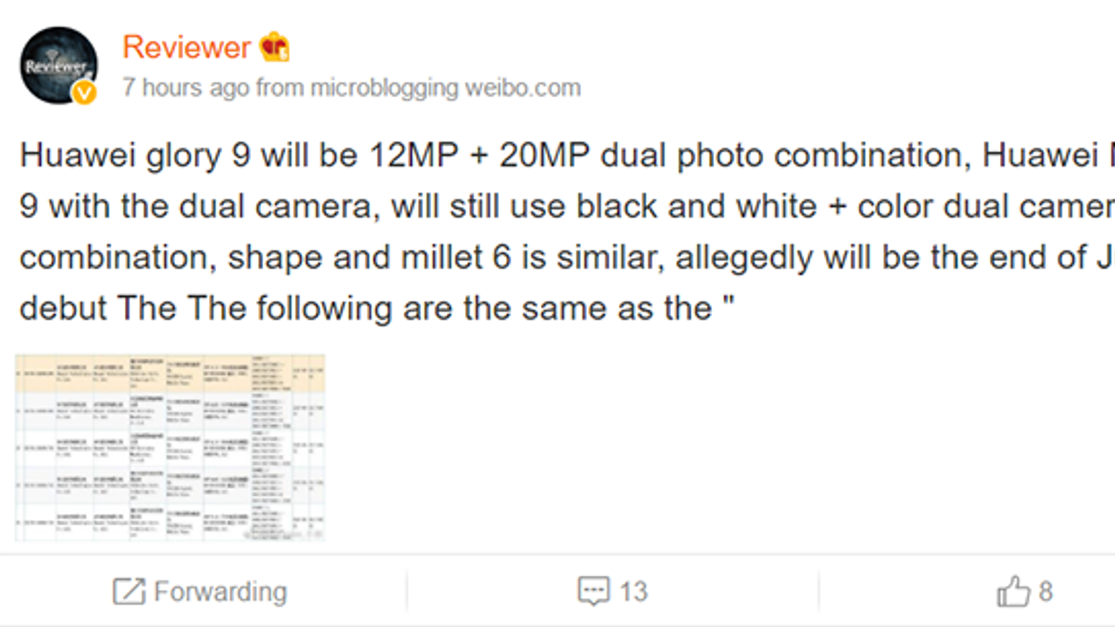 Как пишет один из пользователей китайской соцсети Weibo, готовящийся к выпуску смартфон Huawei Honor 9 унаследует качественную основную камеру у старшей модели Mate 9 – с датчиками разрешением 20 Мп (монохромный) и 12 Мп (RGB). Правда, о том, будет ли эта камера отмечена логотипом Leica, ничего не говорится.