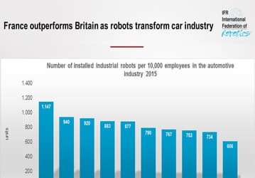 Франция вышла на второе место в Европе по количеству роботов, используемых в автомобилестроении