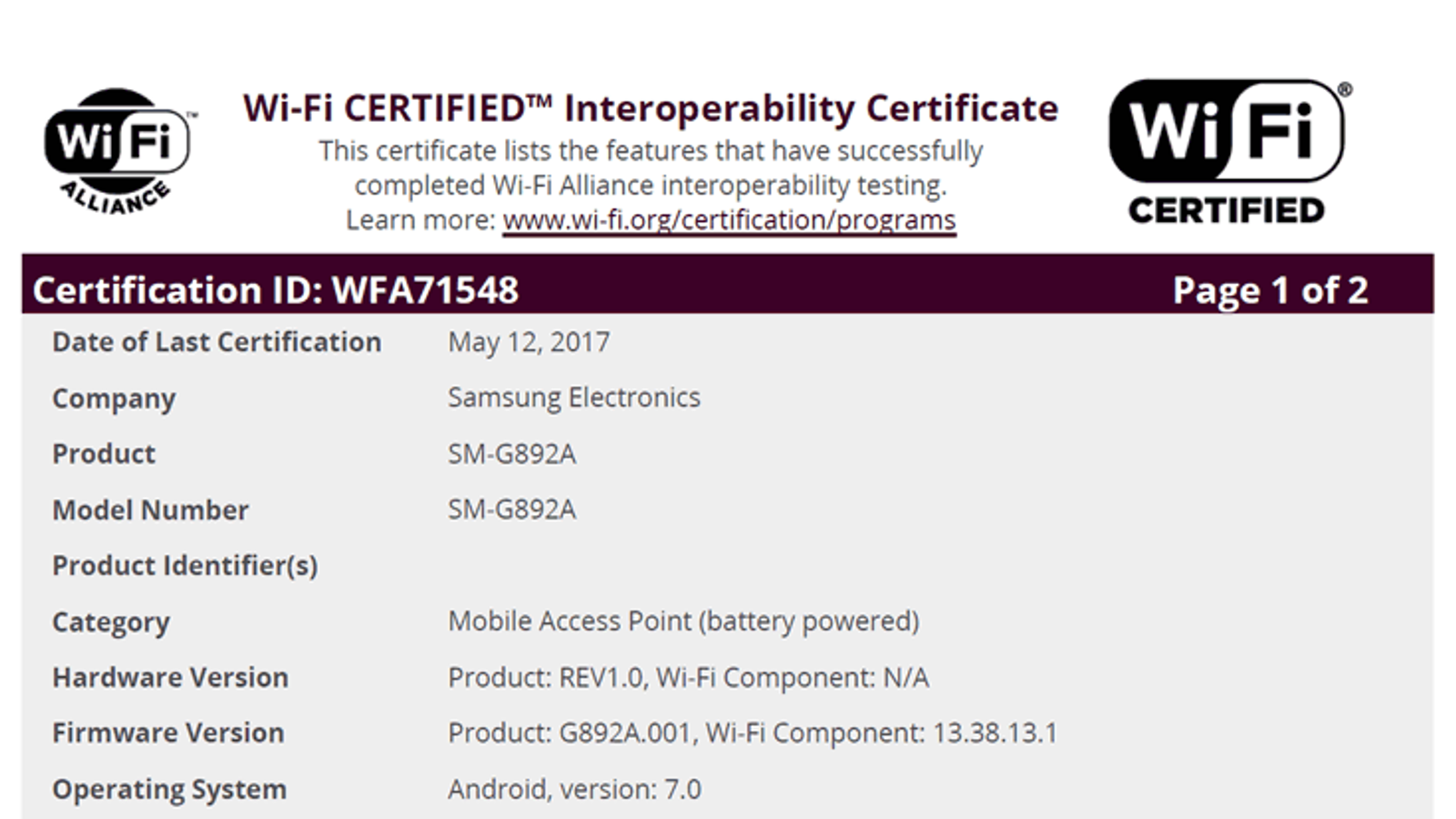 Источник опубликовал еще одно свидетельство того, что Защищенный смартфон Samsung Galaxy S8 Active готовится к выходу. Устройство с индексом SM-G892A появилось в базе данных организации Wi-Fi Alliance (WFA) как получившее сертификат совместимости Wi-Fi Certified.