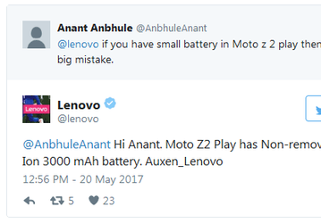 Литий-ионный аккумулятор Moto Z2 Play будет несменным