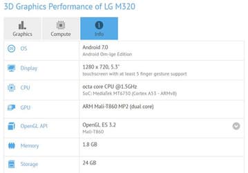 Смартфон LG M320 замечен в базе данных GFXBench