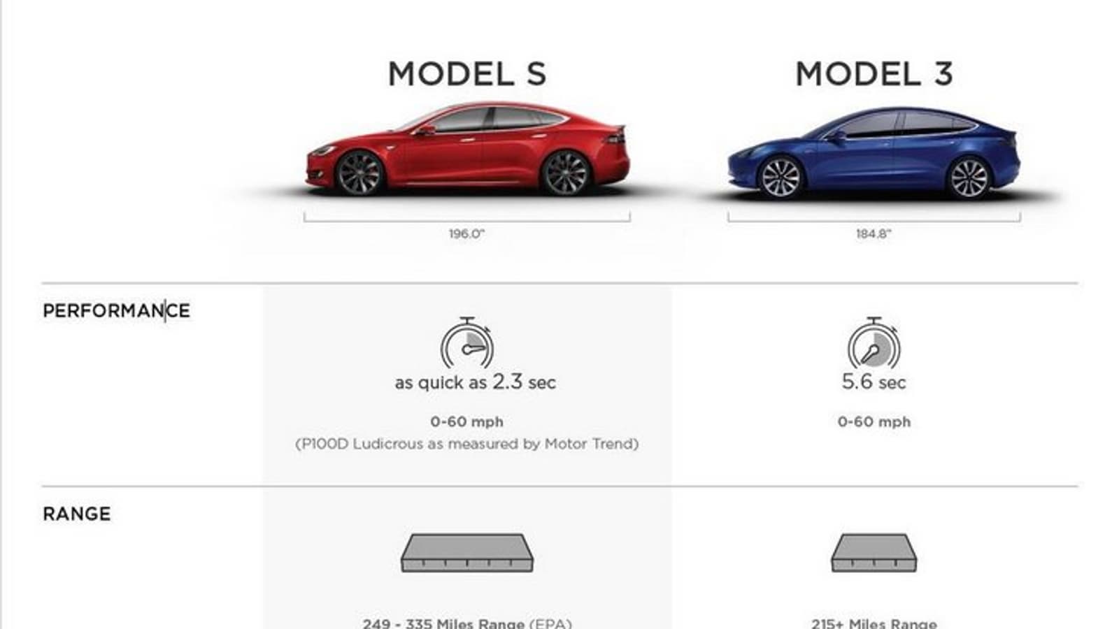 Итак, длина автомобиля составляет 4694 мм. Время разгона до 96 км/ч (60 миль в час) составит 5,6 секунды, хотя Tesla уточняла, что в дальнейшем выпустит и более быстрые модификации.