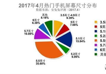 Самыми популярными остаются смартфоны с дисплеями диагональю 5,5 дюйма, на которые приходится 35,6% рынка