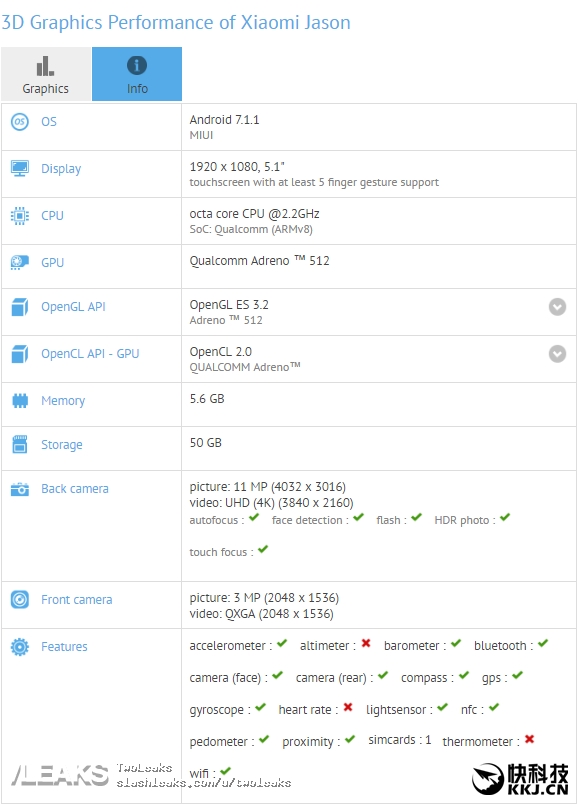 В базе данных тестового пакета GFXBench появилось описание смартфона с кодовым названием Xiaomi Jason, под которым, если верить китайским информаторам, скрывается модель Xiaomi Mi6C.