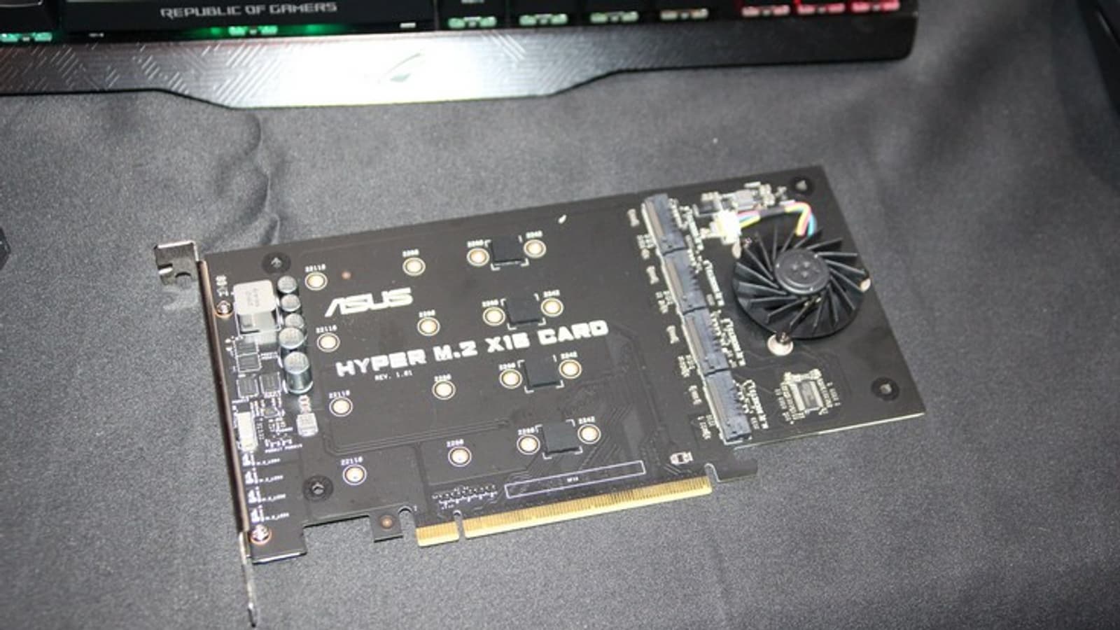На выставке Computex компания Asus показала устройство Hyper M.2 x16 Card, которое заодно можно назвать и новинкой Intel. Hyper M.2 x16 Card — это плата расширения с интерфейсом PCIe, которая располагает четырьмя разъёмами для подключения SSD формата M.2.