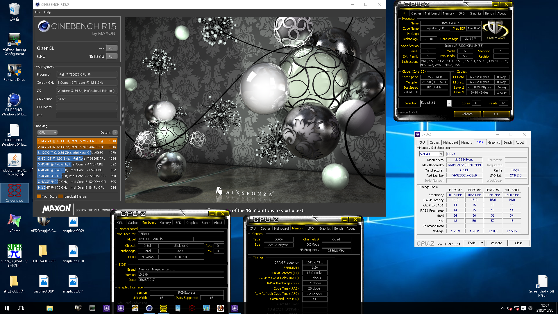 Кроме того, есть результат тестирования разогнанной модели Core i7-7800X в ПО Cinebench R15. Процессор на частоте 5755 МГц набрал 1918 баллов. Для сравнения, Core i7-5820K на частоте почти 6 ГГц набирает 1806 баллов. К слову, это означает, что Core i7-7800X установил новый рекорд в данной дисциплине среди шестиядерных моделей