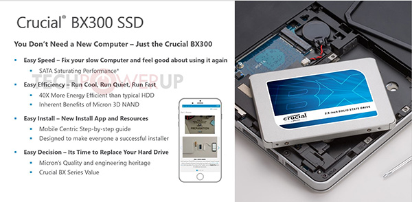 Компания Micron Technology летом текущего года пополнит ассортимент твердотельных накопителей серией BX300. Это будут SSD начального уровня в стандартных корпусах типоразмера 2,5 дюйма с интерфейсом SATA, хотя позже в рамках серии могут появиться и модели типоразмера M.2.
