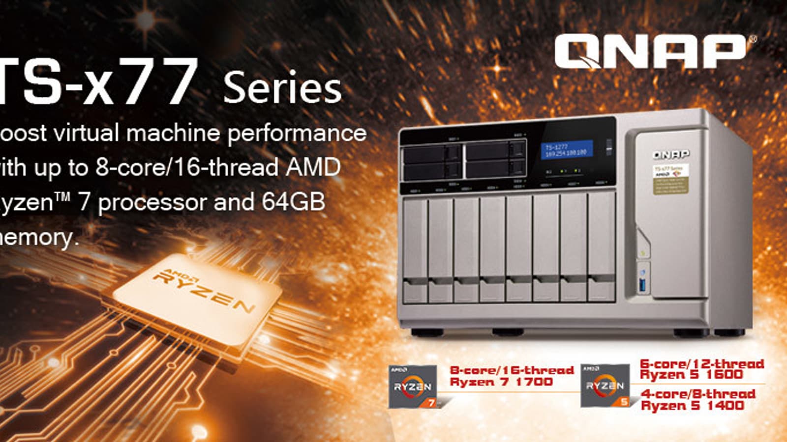 Компания QNAP Systems приурочила к выставке Computex 2017 анонс первых в мире хранилищ с сетевым подключением (NAS) на процессорах AMD Ryzen. Соответствующая серия NAS получила обозначение TS-x77.