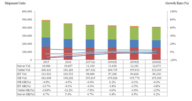 Сюда относятся настольные, мобильные, серверные ПК и планшеты. Это будет соответствовать снижению на 4%, тогда как в 2016 году был зафиксирован спад на 9%.