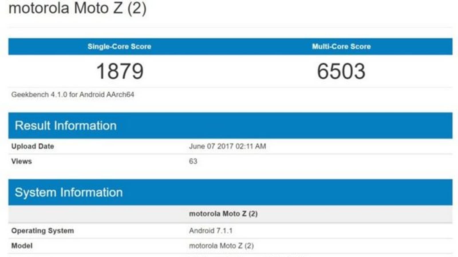 Очевидно, что производитель также готовится выпустить обновленную версию флагманской модели Moto Z2, производительность которой уже можно оценить по результатам ее тестов в Geekbench. Смартфон оснащен однокристальной системой Snapdragon 835.