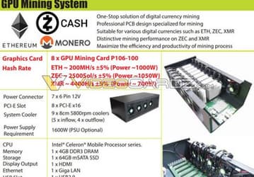 GPU Mining System — готовая «ферма» для добычи криптовалют на основе восьми специализированных карт Nvidia GPU Mining Card P106-100