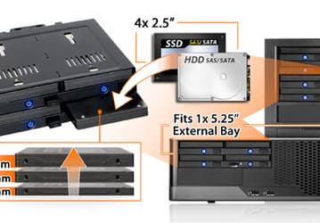 Icy Dock flexiDOCK MB524SP-B позволяет установить в отсеке типоразмера 5,25 дюйма четыре накопителя с возможностью горячей замены