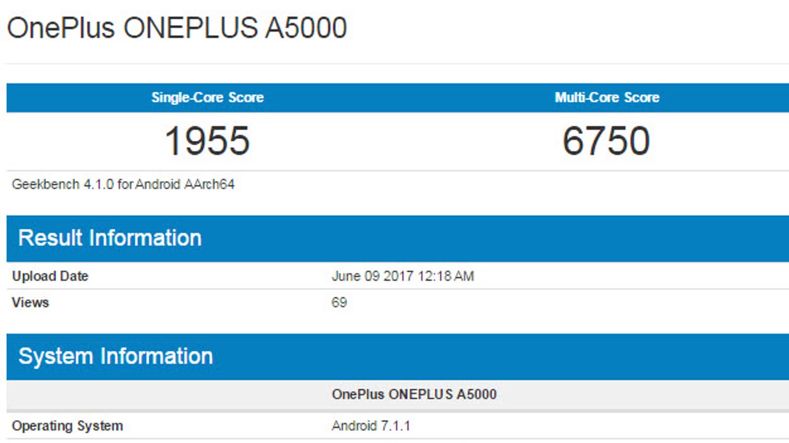 База данных тестового пакета Geekbench подтверждает данную информацию. Смартфон с кодовым названием OnePlus A5000 неоднократно был протестирован в Geekbench в двух версиях: с 4 и 8 ГБ ОЗУ.