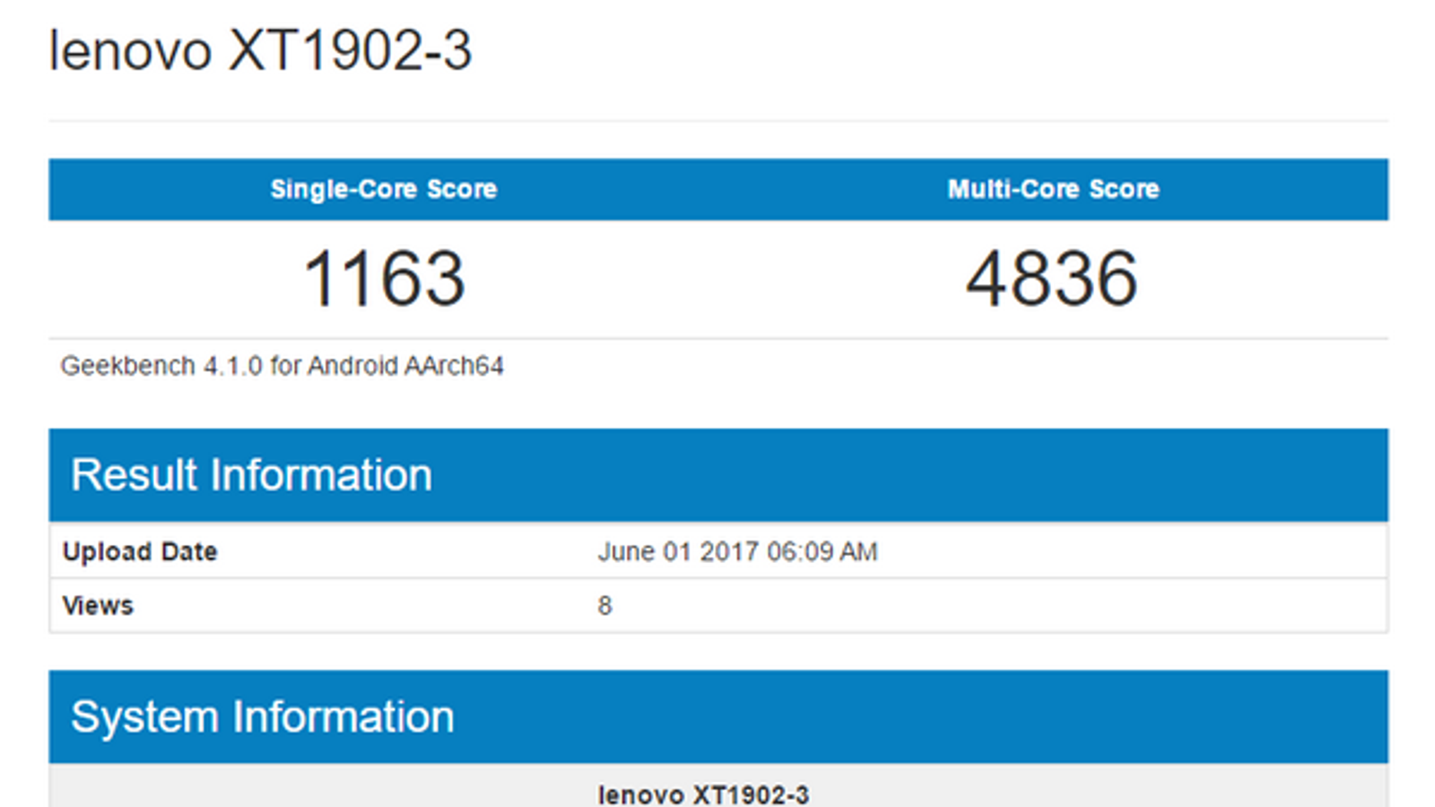 В начале месяца в базе данных тестового пакета Geekbench был замечен смартфон с модельным номером Lenovo XT1902-3. Наблюдатели считают, что речь может идти о смартфоне Moto M2.