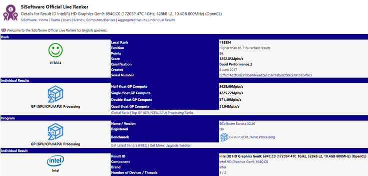 В базе данных SiSoftware Sandra появился инженерный образец неизвестного процессора Intel с интегрированным GPU HD Graphics Gen9, идентификатор которого (694C:C0) соответствует идентификатору одного из решений AMD.