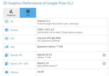 ПО GFXBench говорит о том, что у смартфона Google Pixel XL2 будет дисплей с соотношением сторон 2:1 и 128 ГБ флэш-памяти