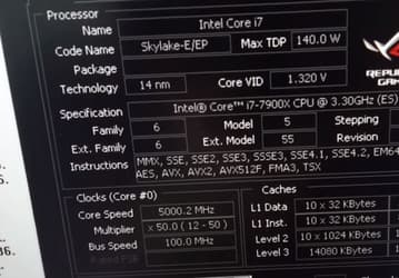 Процессор Intel Core i9-7900X можно разогнать до 5 ГГц при использовании ЖСО и до 4,5 ГГц, используя обычный башенный кулер