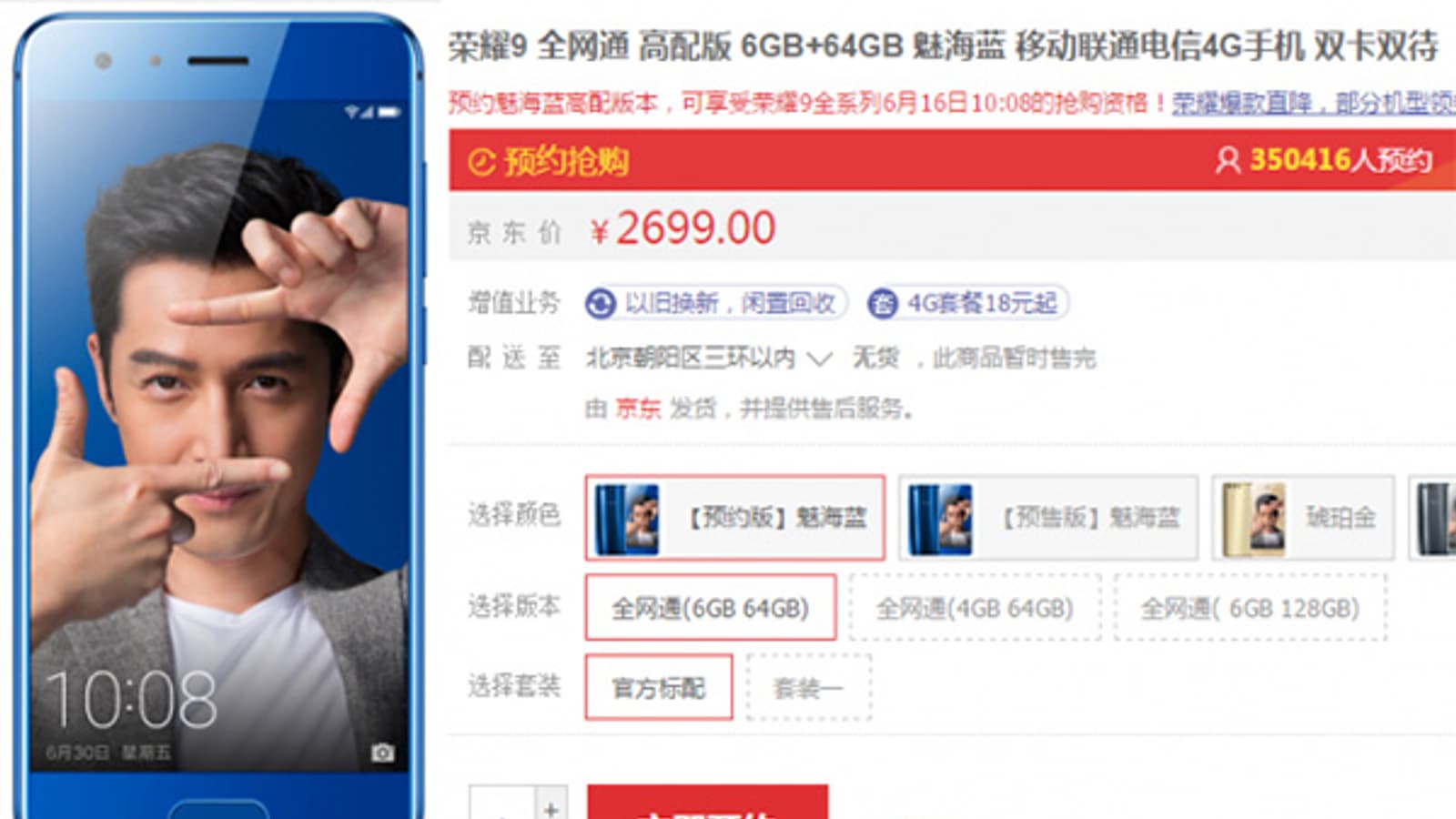 Представленный вчера смартфон Huawei Honor 9 вызвал серьезный интерес у потребителей. Свидетельством этого является количество заявок на приобретение: менее чем за сутки только на одном ресурсе JD.com их было подано свыше 350 000. А ведь новинку можно будет приобрести в Vmall и еще шести других магазинах.