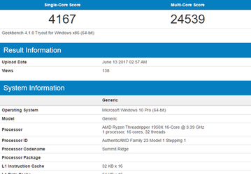 Появились результаты тестирования CPU AMD Ryzen Threadripper 1950X в тесте Geekbench