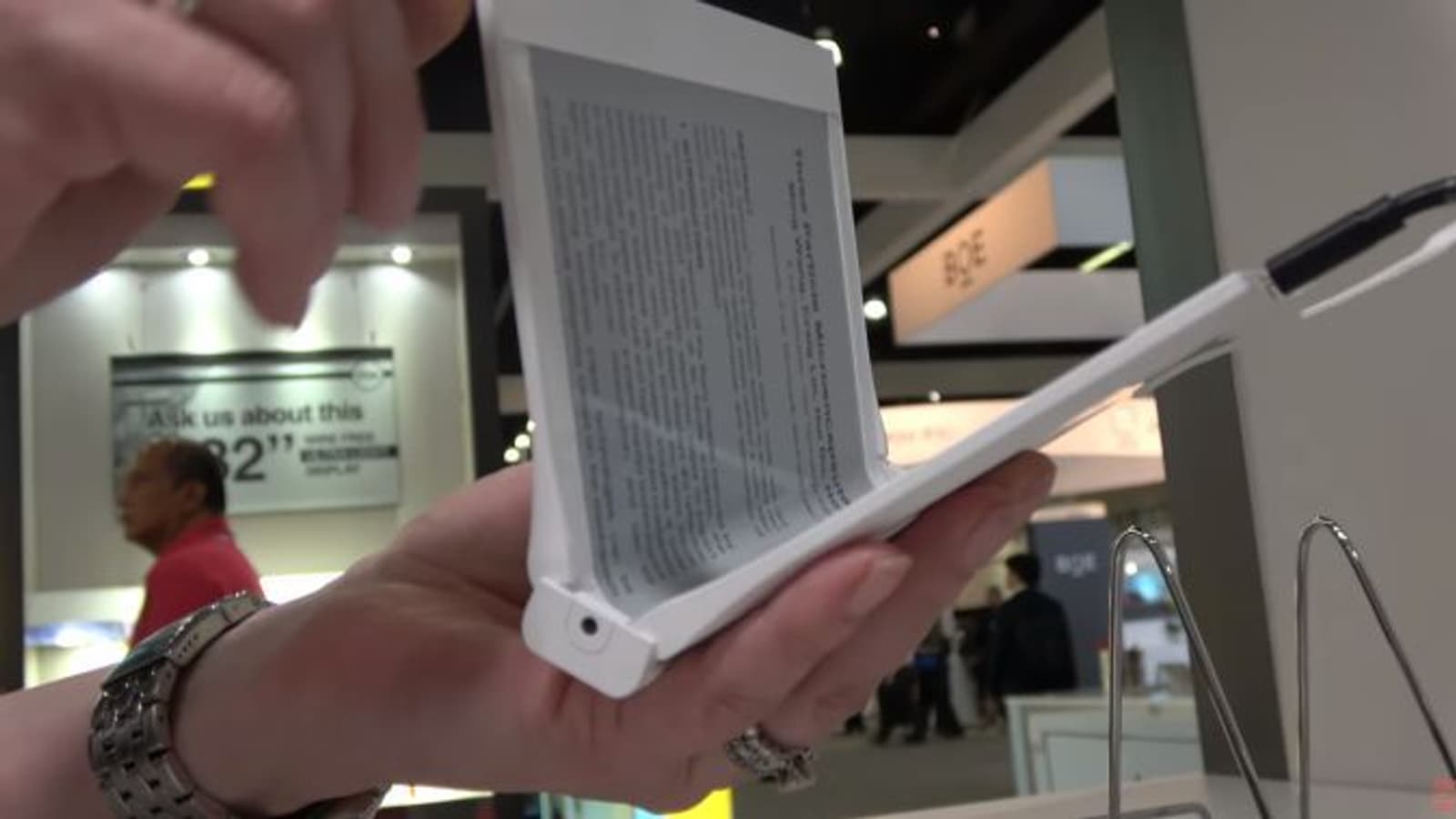 Одним из основных экспонатов стенда компании было устройство для чтения электронных книг, выполненное в виде настоящей книги на основе гибкого дисплея E Ink. Он имеет диагональ 10,2 дюйма при плотности 220 точек на дюйм.