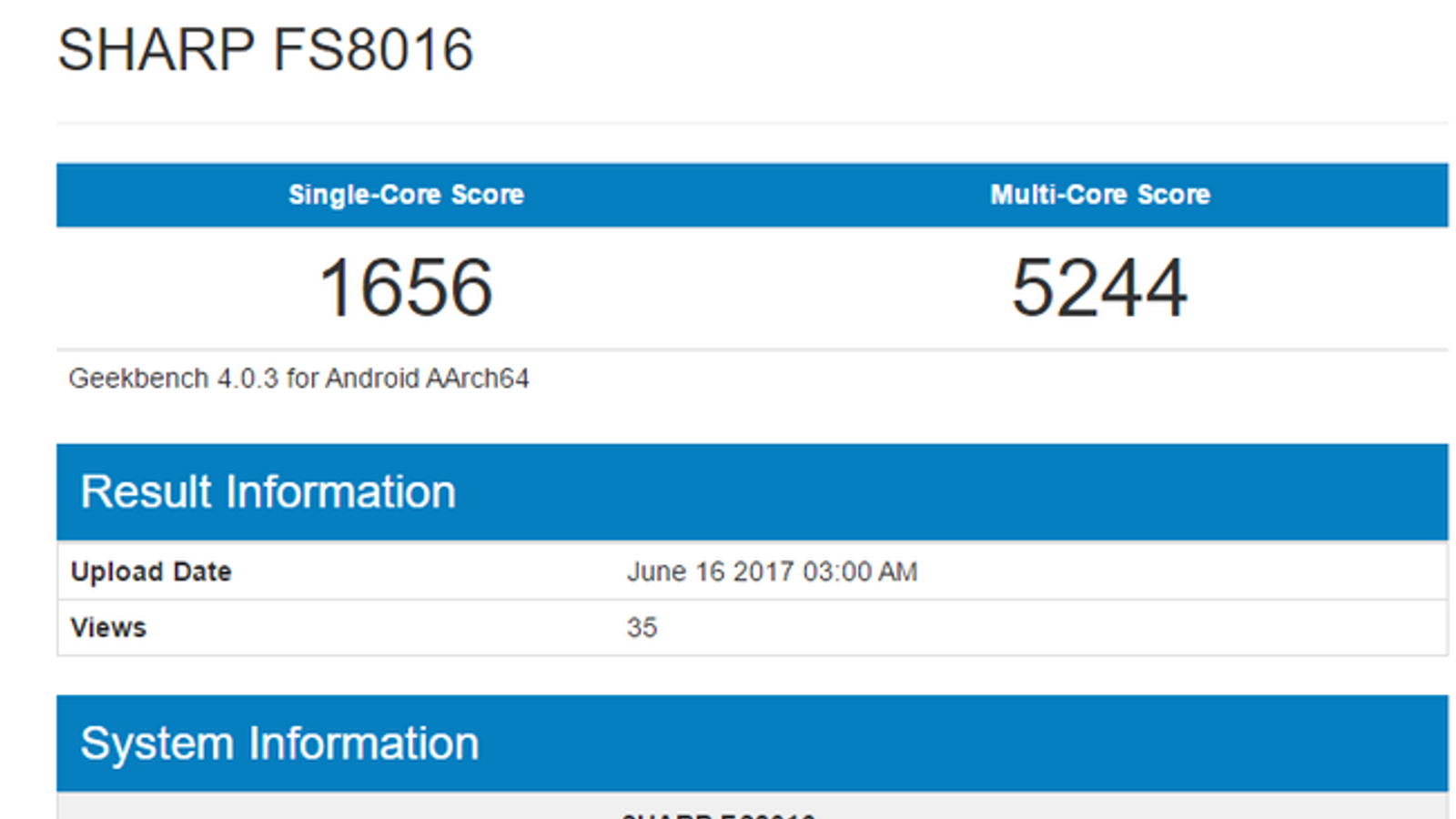 В базе данных тестового пакета Geekbench появился смартфон с модельным номером Sharp FS8016, который оснащен новой мобильной платформой Snapdragon 660.