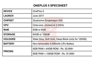 Основные спецификации смартфона OnePlus 5 появились накануне анонса; названа новая емкость аккумулятора