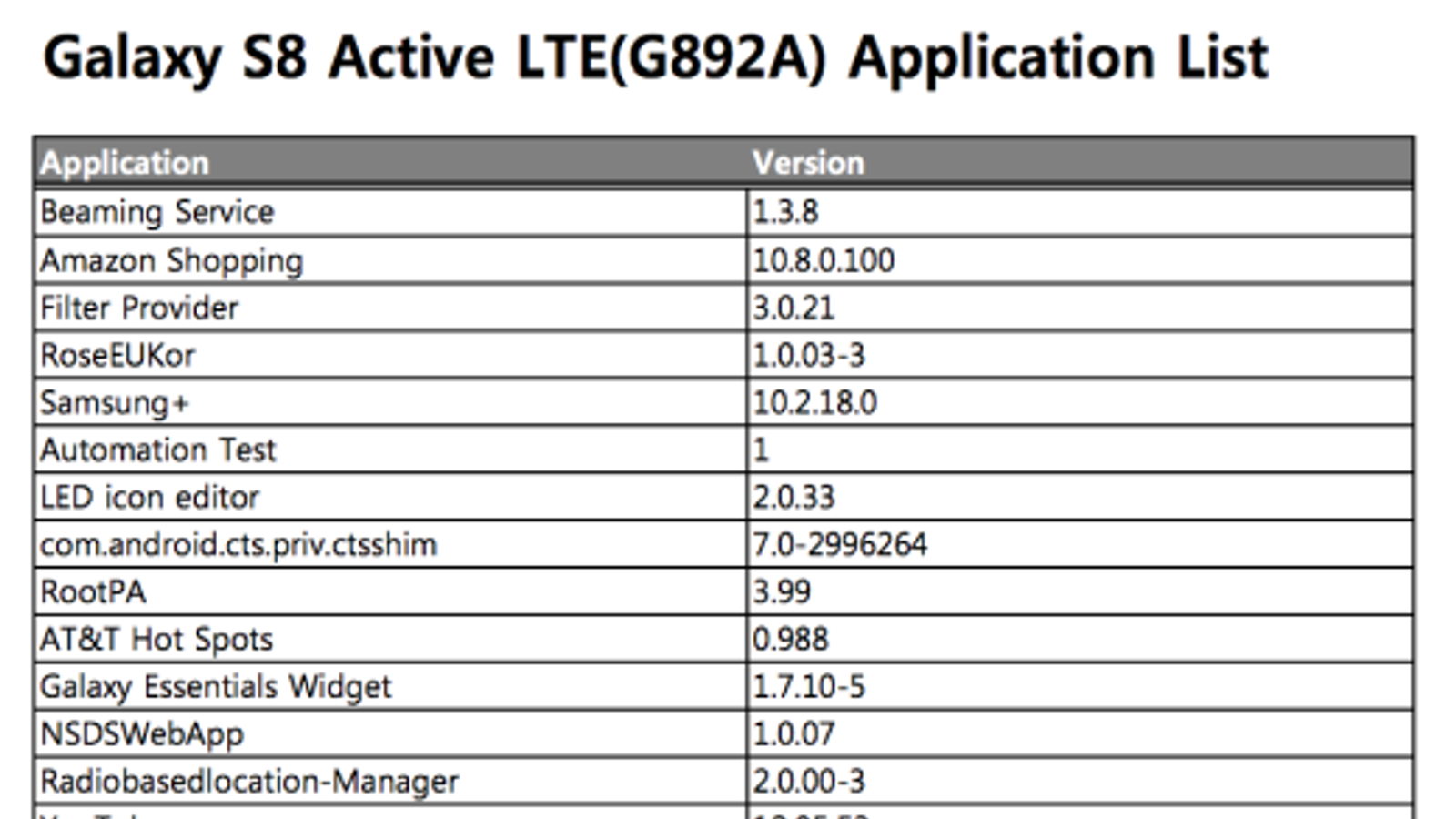 Недавно смартфон Samsung Galaxy S8 Active был замечен на сайте компании вместе со списком приложений, которые будут установлены в нем из коробки. Полный перечень сервисов, приложений и их версий вы найдете в источнике.