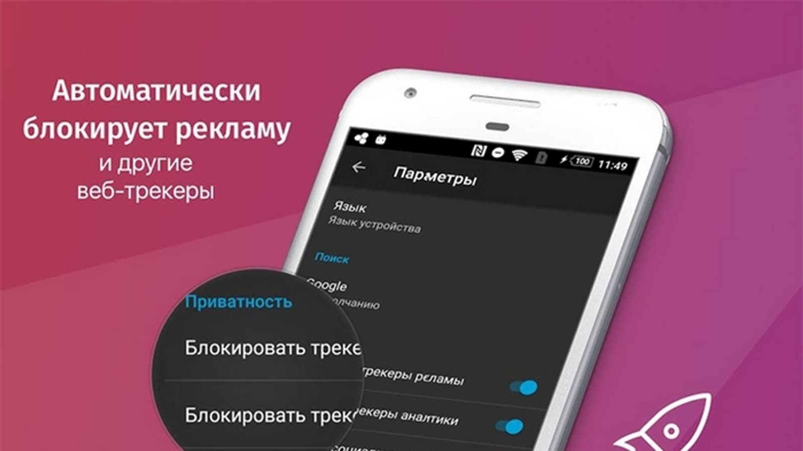 В то время, как другие браузеры предлагают приватный режим работы, Firefox Focus постоянно работает в приватном режиме. Браузер блокирует трекеры и рекламу, что самым позитивным образом сказывается на скорости загрузки страниц и потреблении трафика.