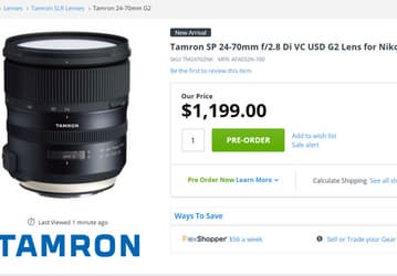 Объектив Tamron SP 24-70mm f/2.8 Di VC USD G2 замечен в продаже