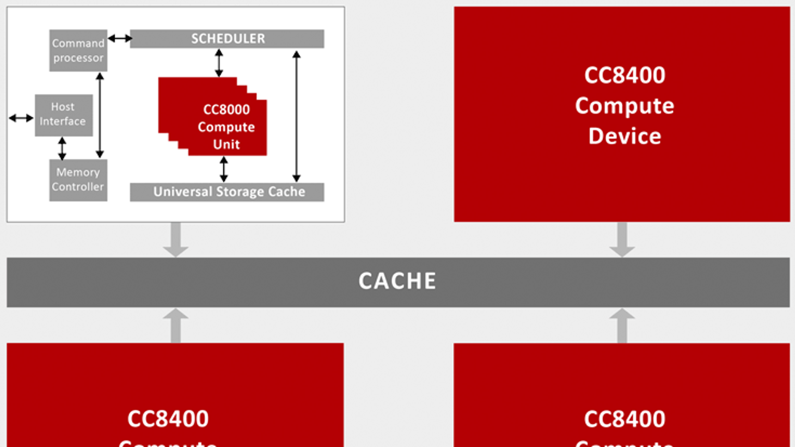 В серию входит IP-ядро CC8400, конфигурация которого включает 256 ядер MESH, каждое из которых обладает 32-разрядным вычислительным блоком, обеспечивающим при работе на частоте 1 ГГц производительность 576 GFLOPS. Ядро CC8400-Quad с четырьмя CC8400, работающими как единый IP-блок, обеспечивает производительность более 2 TFLOPS. Разработчик отмечает встроенную поддержку сложных математических операций и вычислений с двойной точностью. Ядра серии CC8000 совместимы с OpenCL 1.2 FP и OpenVX, поддерживая на аппаратном уровне все аспекты OpenCL, включая трансцендентные функции. ПО для Vivante CC8000 не зависит операционной системы и может быть портировано практически на любую платформу.