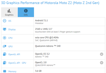 GFXBench подтверждает характеристики смартфона Moto Z2