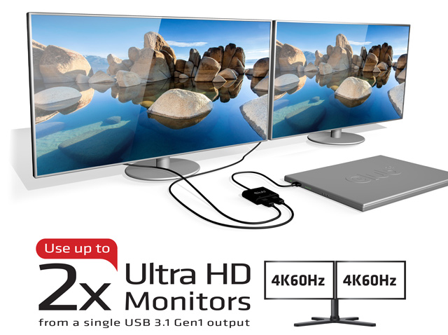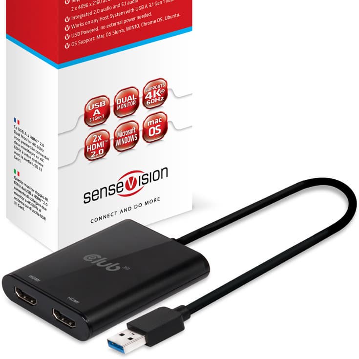 Ассортимент компании Club 3D пополнило устройство SenseVision CSV-1474, позволяющее превратить один порт USB 3.1 Gen 1 в два порта HDMI 2.0. Переходник поддерживает одновременное подключение двух мониторов разрешением до 4K (4096 х 2160 пикселей) с кадровой частотой до 60 Гц.