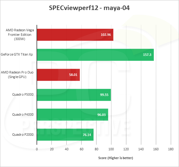 Итак, противниками устройства, которое, напомним, стоит 1000 долларов, выступили Nvidia Titan Xp (1200 долларов), Quadro P5000 (1900 долларов), Quadro P4000 (900 долларов) и Quadro P2000 (450 долларов). Кроме того, зачем-то взяли Radeon Pro Duo в режиме с одним активным GPU. Как можно видеть, прямым конкурентом является Quadro P4000, а также отчасти имеет смысл сравнение в Titan Xp.