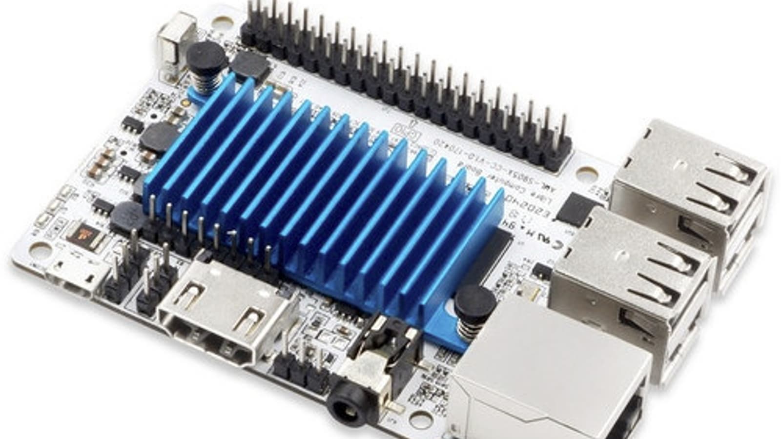 Основой платы Le Potato стала SoC Amlogic S905X с четырьмя ядрами Cortex-A53 частотой до 1,5 ГГц и GPU Mali-450 MP. Охлаждение ключевых компонентов поручено алюминиевому радиатору, за который вкладчикам придется немного доплатить. Аналогично и за объем оперативной памяти DDR3, который может составлять 1 или 2 ГБ. Встроенной флэш-памяти нет, есть лишь только разъем для модуля eMMC и слот для карты памяти microSD.