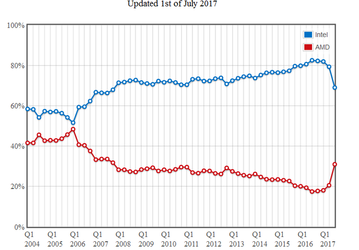 Согласно данным ПО PassMark, доля AMD на рынке CPU выросла до 31%