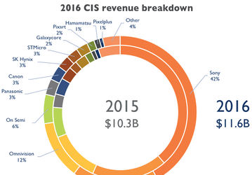 В 2016 году рынок датчиков изображения в денежном выражении составил 11,6 млрд долларов