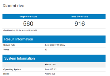 Бюджетный смартфон Xiaomi Riva работает под управлением Android 7.1.2