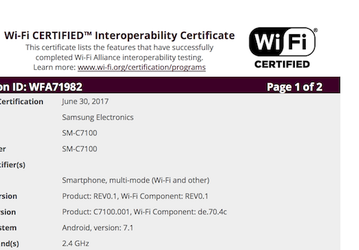 Смартфон Samsung Galaxy C7 (2017) прошел сертификацию WiFi Alliance