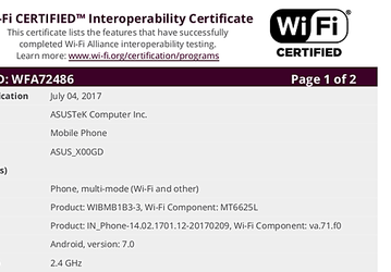 Смартфон Asus X00GD с аккумулятором емкостью 4850 мА∙ч прошел сертификацию в организации WiFi Alliance