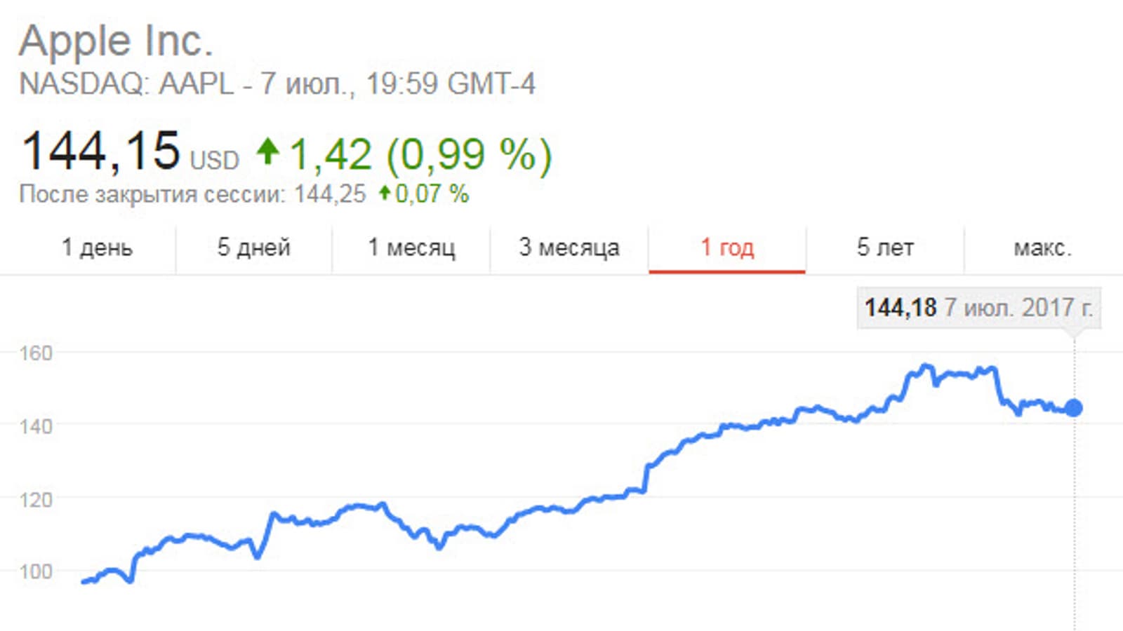 Два месяца назад, когда акции компании Apple стоили 153 доллара, рыночная капитализация Apple превысила 800 млрд долларов.