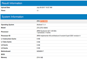 Смартфон ZTE V0840 работает под управлением ОС Android 7.1.1