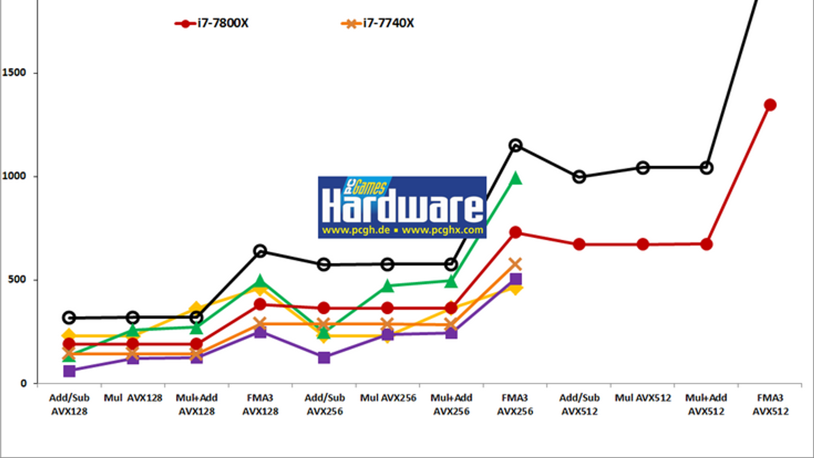 Специалисты ресурса PC Games Hardware при тестировании новых процессоров обнаружили интересную деталь. CPU Core i7-7800X продемонстрировал существенно меньшую производительность в сравнении с Core i9-7900X в задачах, где важна производительность при работе с набором команд AVX-512.