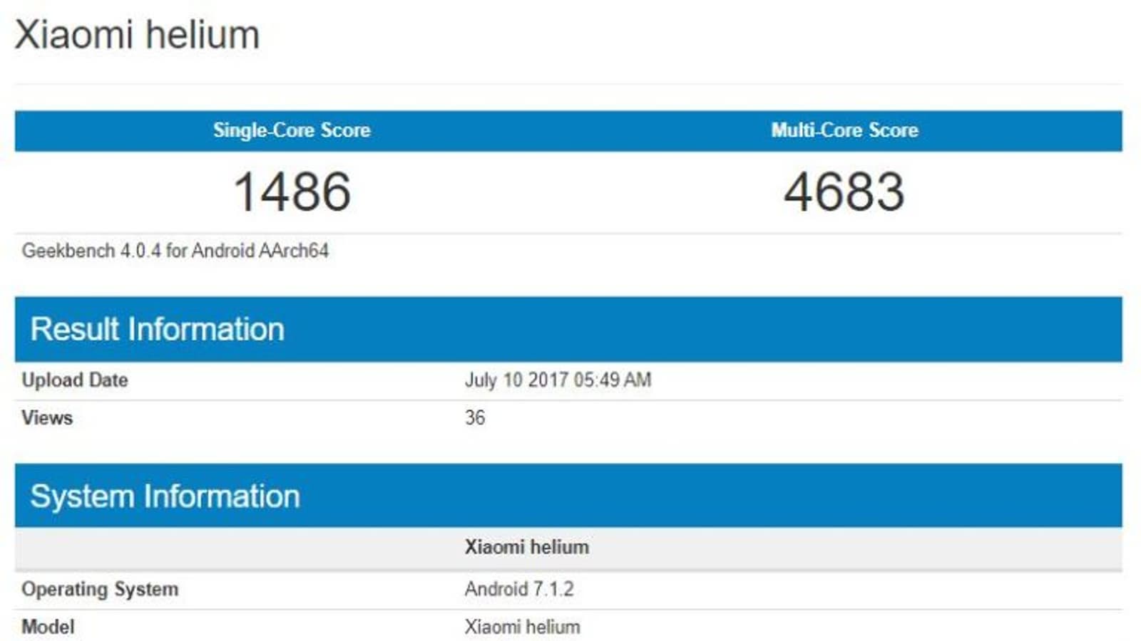 Cмартфон под названием Xiaomi Helium был протестирован в базе данных тестового пакета Geekbench, которая предоставила нам информацию о его технических характеристиках.
