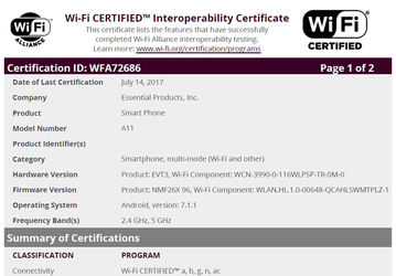 В базе данных WiFi Alliance появился смартфон Essential A11