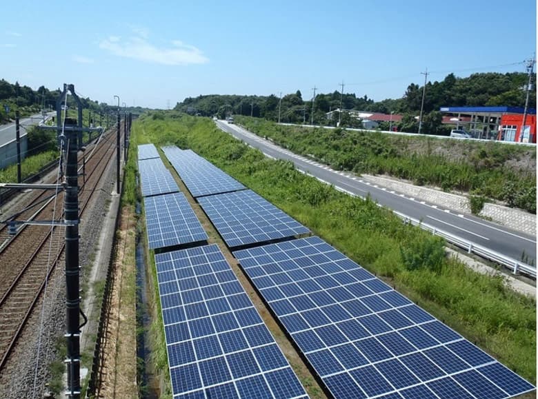 Панели установлены на месте, где раньше планировалась прокладка линии скоростного поезда. Из-за выступлений оппозиции строительство линии, призванной связать Токио с аэропортом Narita International, было отменено и земля, зарезервированная под строительство, освободилась.